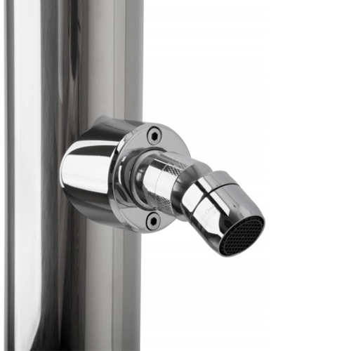 Stainless steel 316L foot washer column. Classic design, totally MADE IN ITALY. Complete with temporized tap, foot washer with aerator, hand shower and stainless steel flexible hose. Floor water connection 1/2"G. Work only with cold water.