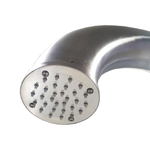 Shower column for outdoor satin stainless steel AISI 316L, SUPERNOVA collection. Classic design, totally MADE IN ITALY. Composed recessed shower head Ø 90 mm and progressive mixer. Floor water connection 1/2"G. Work with cold water only.