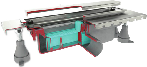 APPLICATIONS: Bathrooms in public places (bars, shopping malls, hospitals, nursing homes, stations,barracks, prisons, etc.), showers in private bathrooms and hotels, showers in sports halls and dressing rooms, wellness centres, spas, bathing, camping, saunas and steam baths, indoor and outdoor pools, industrial kitchens, terraces and balconies, garages, driveways to private homes, food and drink industries, pharmaceutical environments, chemical environments, wine cellars.