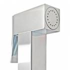 Kit ablution spray: shattaf hand shower SQUARE collection, brass chrome plated, start and stop button, ½” M connection.  Complete with water intake with safety system which stops the water flow before the flexible hose connection just in placing the shower in its conical support. Stainless steel chrome plated flexible hose, double interlock for high water pressure, length 120 cm with ½ "F x ½" conical connection. PROUDLY MADE IN ITALY.