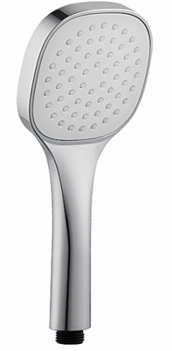 FEATURES: MADE IN EUROPE, 1 limescale water jet hand shower, square shape 105 x 105 mm ultra slim with rounded angles, made of high impacted white ABS, white face plate, gray limescale nozzles easy to clean, 1/2" M connection, designed and developed for low water consumption, water flow reducer of 9,5 lt/min included, high performance with low water pressure, with new innovative air induction system, 5 years warranty, plastic bag single packed.