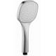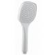 White ABS ultra slim hand shower, AeroTek™ MYSTIC collection, 1 limescale water jet, modern design, square shape 105 x 105 mm with rounded angles. This hand shower is characterized by the innovative system that works with air mixed with water which improves performance while maintaining a soft feel on the skin.