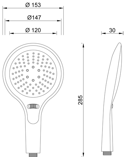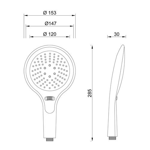 ABS chrome plated hand shower, SNOW collection, 2 anti-limescale water jets, modern design, round shape Ø 153 mm.