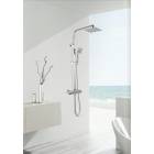 Complete telescopic shower column in brass chromed RUBINO collection. Including ABS chrome plated adjustable central slider with diverter, stainless steel shower head 200 x 200 mm ultra-thin, shower column tube 30x18 mm, ABS shower hand 1 jet with anti-scale nozzles and shower flexible chrome stainless steel double interlock 150 cm.