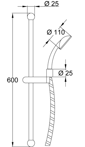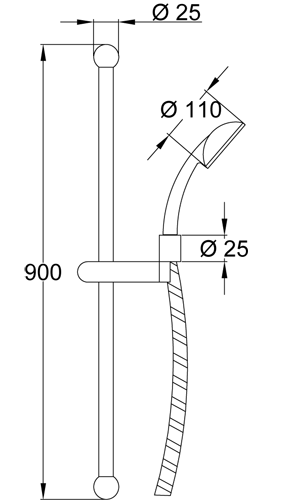 Polished stainless steel sliding rail, round tube, SIMPLY collection, modern design. ABS chrome plated hand shower, MYDEA collection, limescale water jet, round shape Ø 110 mm, 3 water jets. Steel chrome plated 150 cm flexible hose.