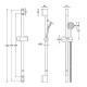 Complete stainless steel matt white sliding rail, round tube Ø 25 mm, CLASSIC collection. ABS polish white hand shower, FLAT collection, limescale water jet, round shape Ø 100 mm, 1 water jet. Steel chrome plated 150 cm flexible hose.