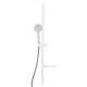 Complete stainless steel matt white sliding rail, round tube, CLASSIC collection. ABS polish white hand shower, FLAT collection, limescale water jet, round shape Ø 100 mm, 1 water jet. Steel chrome plated 150 cm flexible hose, white ABS soap dish.