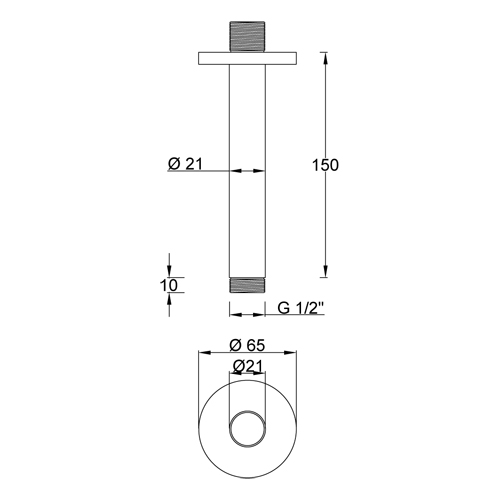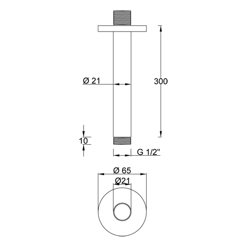 CARATTERISTICHE: MADE IN ITALY, design moderno, braccio doccia a soffitto ottone cromato, forma tonda Ø 21 mm, connessione ½” M x ½” M, rosone tondo ABS cromato Ø 65 mm, garanzia sul prodotto 5 anni, imballo singolo in scatola cartone.
