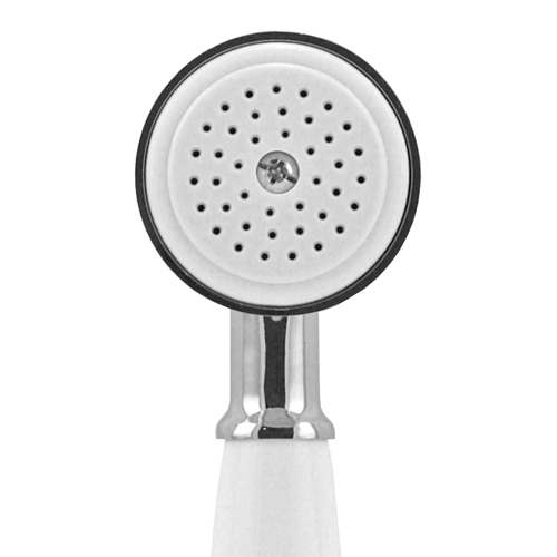 CARATTERISTICHE: MADE IN ITALY, design classico, doccia 1 getto fisso, forma tonda Ø 52 mm, ottone cromato, griglia in plastica bianca, manico in moplen, connessione 1/2" M, garanzia sul prodotto 5 anni, imballo singolo in sacchetto.