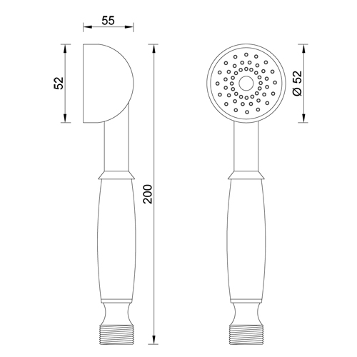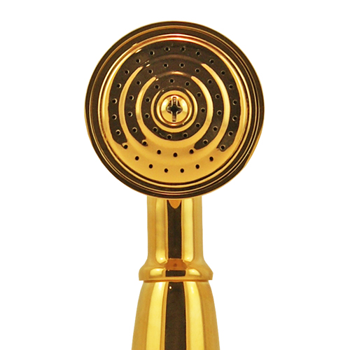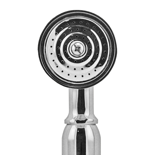 Doccia in ottone cromato, 1 getto fisso, serie ANTICA. Dal design classico, di forma tonda Ø 52 mm con manico in moplen. Griglia in plastica e manico in moplen