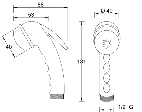 Doccia per bidet serie MONING in ABS, con getto fisso, pulsante start and stop, attacco ½” M. PROUDLY MADE IN ITALY.