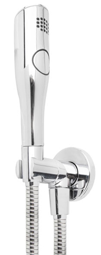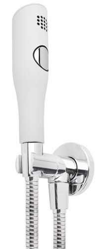 Kit per bidet: doccia serie SHUTTLE in ABS con tubetto interno in POM atossico alimentare. Getto fisso, pulsante start and stop, attacco ½” M. Completa di presa acqua con sistema di sicurezza che interrompe il flusso d’acqua a monte dell’attacco flessibile riponendo la doccia nella sua sede conica. Flessibile in acciaio inox cromato, doppia aggraffatura, per alte pressioni, lunghezza 120 cm con attacco ½” F x ½” C PROUDLY MADE IN ITALY.