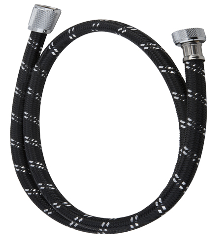 Set doccia per bidet in polipropilene nero, serie MOON, 1 getto fisso con pulsante cromo start and stop, attacco ½” M. Completa di supporto fisso con sede conica. Flessibile retinato lunghezza 120 cm con attacco 1/2" F x 1/2" conico. PROUDLY MADE IN ITALY.