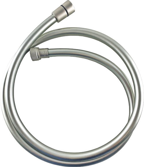 Flessibile doccia in PVC atossico serie GRAY, con attacco 1/2" F x 1/2" C anti torsione, flessibile doccia Ø 15 mm. Rinforzato con fili longitudinali in poliestere di elevata resistenza. Colore metallizzato effetto grigio ricoperto in PVC cristallo trasparente. Portagomma e raccorderia in ottone pressata tramite bussole in acciaio inox. Completo di guarnizioni, pressione di esercizio garantita 10 BAR, imballo singolo in sacchetto e garanzia di 5 anni.