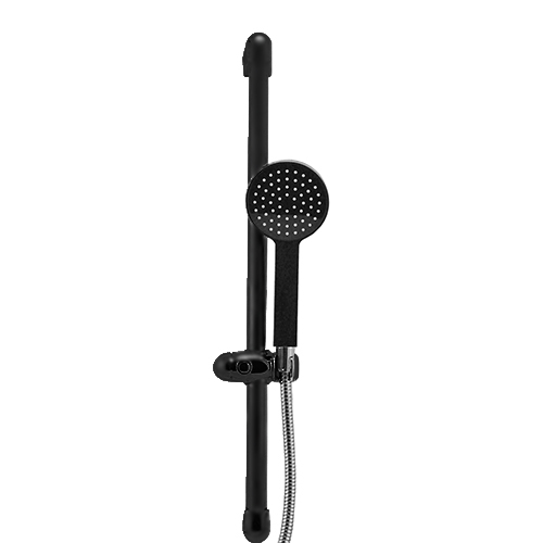 Saliscendi completo con tubo tondo Ø 25 mm in acciaio inox bianco opaco serie POLAR, con doccia in ABS bianco lucido 1 getto anticalcare serie FLAT e flessibile doccia doppia aggraffatura in acciaio inox cromato da 150 cm.