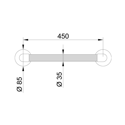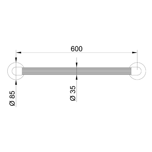 Maniglione di sicurezza lineare, rigato della serie SALLY in PVC medicale bianco. Completo di rosette coprivite diametro 85 mm. Installazione a parete, isolato elettricamente, presa antiscivolo, tubo diametro 35mm. Materiale per il fissaggio incluso nella confezione. Prodotto interamente in ITALIA.