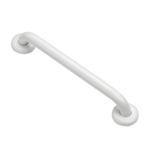 Maniglione di sicurezza lineare in acciaio verniciato bianco a polvere epossidica della serie GIULY. Completo di rosette coprivite diametro 77 mm. Installazione a parete, tubo diametro 32 mm, portata massima kg. 120. Può essere montato sia in verticale che in orizzontale. Materiale per il fissaggio incluso nella confezione. Prodotto interamente in ITALIA.