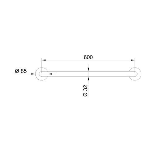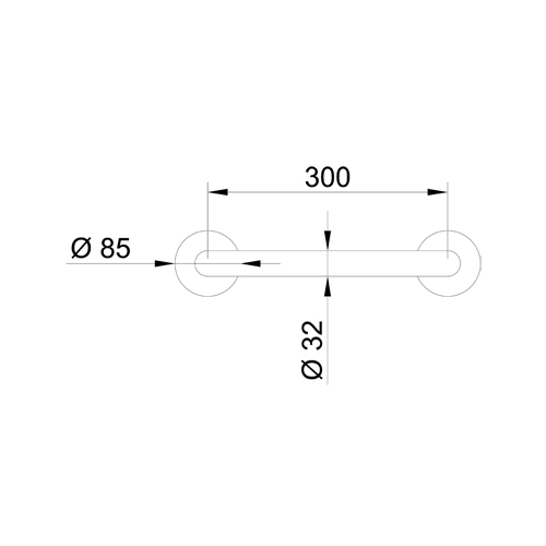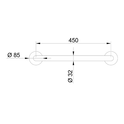Maniglione di sicurezza lineare in acciaio verniciato della serie SALLY. Completo di rosette coprivite diametro 85 mm. Installazione a parete, tubo diametro 32mm. Può essere montato sia in verticale che in orizzontale. Materiale per il fissaggio incluso nella confezione. Prodotto interamente in ITALIA.