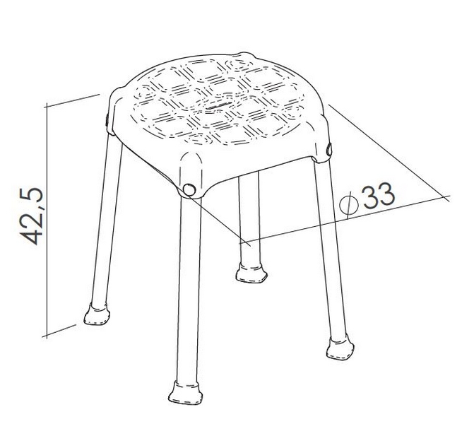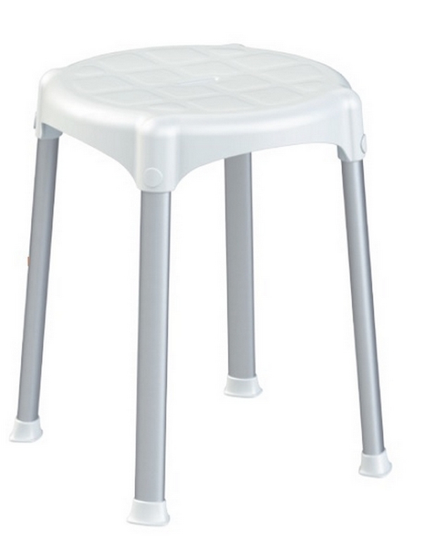Sgabello da bagno in polipropilene bianco della serie DORA. Realizzato per rendere più confortevole l’uso dell’ambiente bagno in tutte le occasioni nelle quali occorra sedersi. La seduta in tecnopolimeri, con superficie in finitura antiscivolo, è forata per permettere il deflusso dei liquidi, e ne consente l’utilizzo anche sotto la doccia; gambe in alluminio anodizzato, altezza della seduta da 42,5 cm, per meglio adattarsi alle necessità dell’utente: alle estremità delle gambe quattro puntali in gomma antiscivolo che ne assicurano la stabilità. Si assembla facilmente senza nessun attrezzo. I materiali utilizzati, tecnopolimeri e alluminio, garantiscono massima igiene e una lunga durata. Non richiede manutenzione ed è facile da lavare. Interamente prodotto in ITALIA.