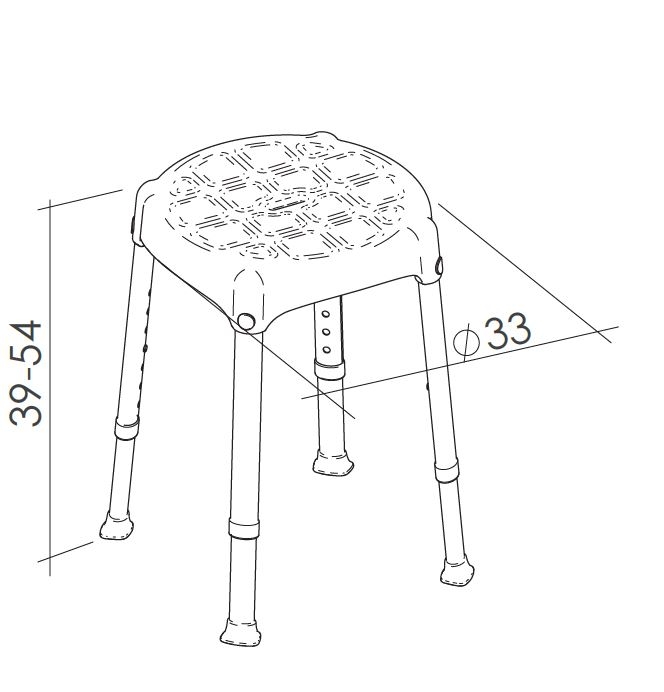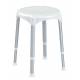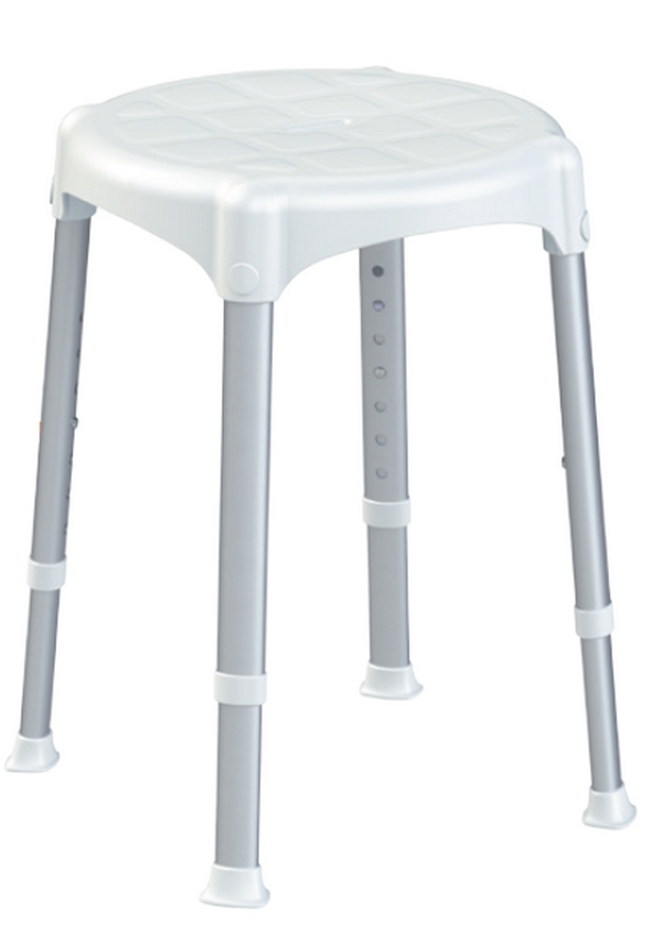 Sgabello da bagno regolabile in polipropilene bianco della serie DORA. Realizzato per rendere più confortevole l’uso dell’ambiente bagno in tutte le occasioni nelle quali occorra sedersi. La seduta in tecnopolimeri, con superficie in finitura antiscivolo, è forata per permettere il deflusso dei liquidi, e ne consente l’utilizzo anche sotto la doccia; le gambe in alluminio anodizzato sono telescopiche e permettono di regolare facilmente l’altezza della seduta da 39 a 54 cm, per meglio adattarsi alle necessità dell’utente: alle estremità delle gambe quattro puntali in gomma antiscivolo che ne assicurano la stabilità; un comodo ripiano sotto la seduta consente l’appoggio di prodotti per l’igiene o altro. Si assembla facilmente senza nessun attrezzo. I materiali utilizzati, tecnopolimeri e alluminio, garantiscono massima igiene e una lunga durata. Non richiede manutenzione ed è facile da lavare. Interamente prodotto in ITALIA.