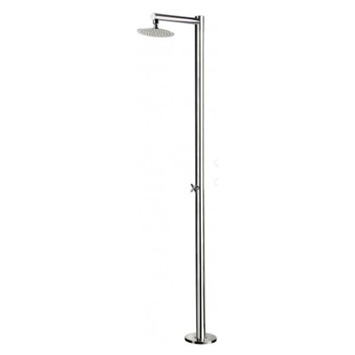 Colonna doccia per esterno in acciaio inox AISI 316L, serie ASTRO. Dal design moderno, totalmente MADE IN ITALY. Composto da soffione in acciaio inox Ø 200 mm, spessore 2 mm e rubinetto a vitone. Collegamento acqua da 1/2”G. Predisposta solo per il funzionamento acqua fredda.