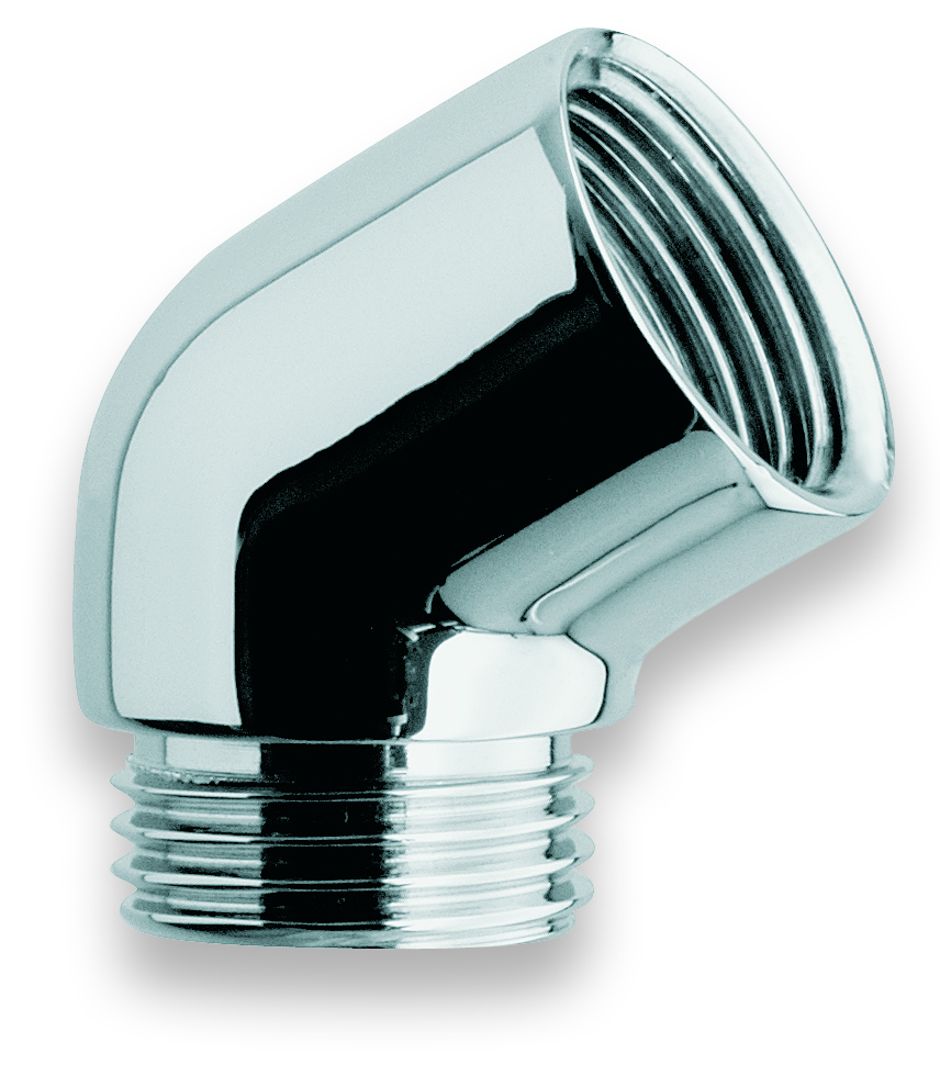 CARATTERISTICHE: MADE IN ITALY, curvetta 30° per doccia estraibile, per supporto monoforo, ottone cromato, connessione 1/2" MF, guarnizione da 1/2", garanzia sul prodotto 2 anni, imballo in sacchetto di plastica.