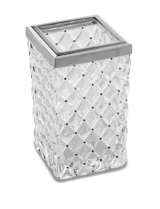 . In cristallo capitonnè con dettagli argentati.