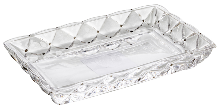 . In cristallo capitonnè con dettagli argentati.