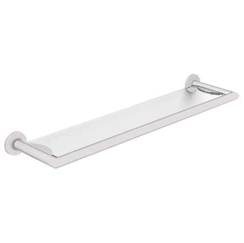 Mensola in acciaio inox AISI304 della serie PLAZA con lastra in ventro satinato. Linea moderna di tendenza minimalista. E' dotata di un doppio sistema di fissaggio che assicura che gli accessori rimangano saldamente fissati al muro.