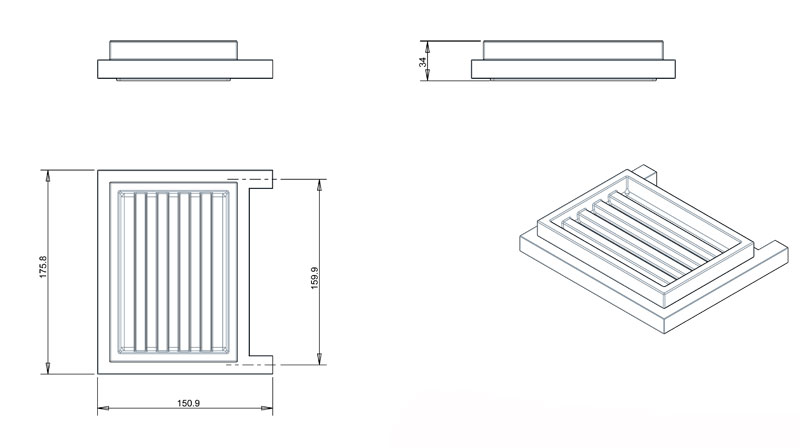 CARATTERISTICHE: MADE IN ITALY, design moderno, porta sapone, acciaio AISI304, contenitore in resina, imballo in scatola singola, garanzia sul prodotto 5 anni.