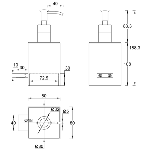 CARATTERISTICHE: MADE IN ITALY, design moderno, dispenser d'appoggio, alluminio verniciato, capacità serbatoio 1 litro, garanzia sul prodotto 2 anni.