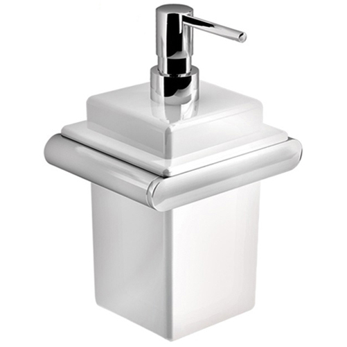 Dispenser a parete in ottone della serie CHILY. Una linea moderna in cui la semplicità si sposa con la funzionalità. Armonia in perfetto equilibrio tra gli elementi che rendono il bagno elegante. Dispenser in ceramica bianca.