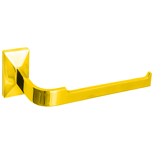 Porta rotolo a parete in ottone della serie TOPAZIO. Una linea moderna che alterna gli spigoli della rosetta alle morbide curve del piatto.
