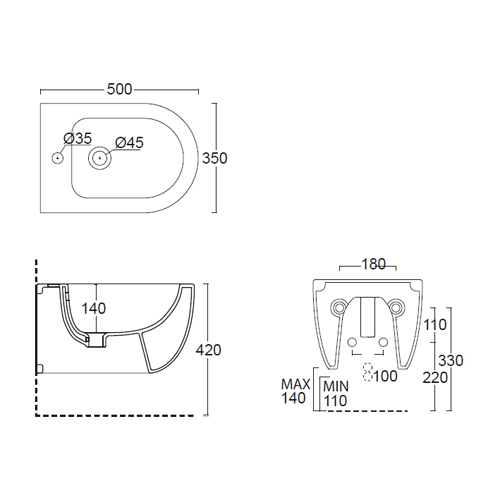 Bidet ceramica sospeso monoforo serie FLAMINGO_50