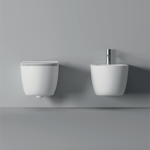 Bidet filo muro in ceramica, serie FLAMINGO_50. Dal design moderno, totalmente MADE IN ITALY. Adatto per applicazione sospeso. Fissaggio NON incluso. Garanzia 5 anni.
