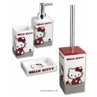 HELLO KITTY - APPLE collection porta scopino WC d'appoggio in resina, di forma quadra con decori rossi fatti a mano su elegante sfondo bianco.