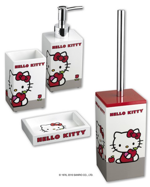 HELLO KITTY - APPLE collection bicchiere d'appoggio in resina, di forma quadra con decori rossi fatti a mano su elegante sfondo bianco.