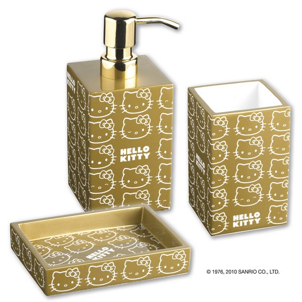HELLO KITTY - GOLD collection bicchiere d'appoggio in resina, di forma quadra con decori bianchi fatti a mano su elegante sfondo oro.