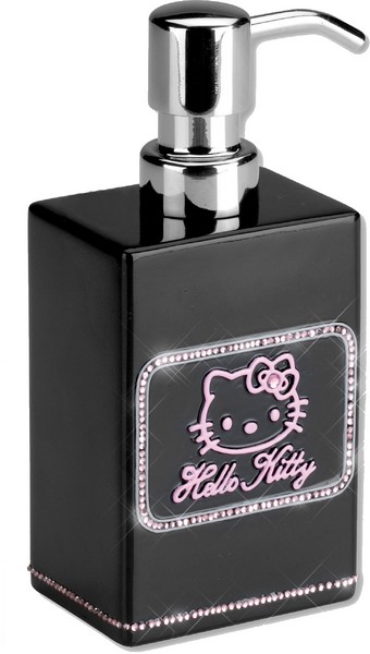 HELLO KITTY - STRASS collection dispenser per sapone d'appoggio in resina, di forma quadra decorato a mano con brillanti su elegante sfondo bianco o nero.
