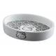 HELLO KITTY - DAMASCO collection porta sapone d'appoggio in resina, di forma ovale con decori rosa o neri fatti a mano su elegante sfondo bianco.