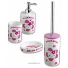 HELLO KITTY - FLOWER collection porta sapone d'appoggio in resina, di forma tonda con decori rosa fatti a mano su elegante sfondo bianco.