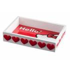 HELLO KITTY - HEARTS RED collection porta sapone d'appoggio in resina, di forma quadra con decori rossi fatti a mano su elegante sfondo bianco.