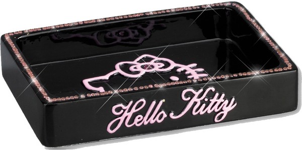 HELLO KITTY - STRASS collection porta sapone d'appoggio in resina, di forma quadra decorato a mano con brillanti su elegante sfondo bianco o nero.