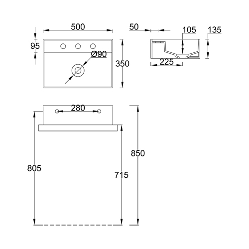 Lavabo ceramica monoforo serie ICON EDGE 50 x 35 applicazione sospesa - LVDICE2600001