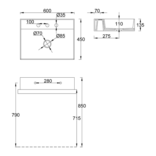 Lavabo ceramica monoforo serie ICON EDGE 60 x 45 applicazione sospesa - LVDICE2800001