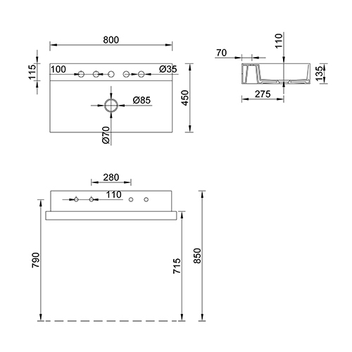 Lavabo ceramica monoforo serie ICON EDGE 80 x 45 applicazione sospesa - LVDICE2100001