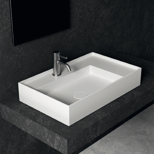 Lavabo d'appoggio in ceramica bianca monoforo, serie ICON PLUS. Dal design moderno, totalmente MADE IN ITALY. Fissaggio NON incluso. Sifone e rubinetto non inclusi. Garanzia 5 anni. Disponibile con o senza foro rubinetteria.