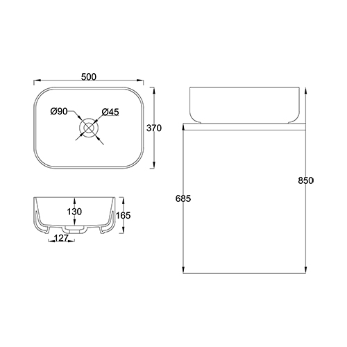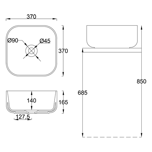 Dimensioni diponibili: 37 x 37 x 16,5 cm, 50 x 37 x 16,5 cm.