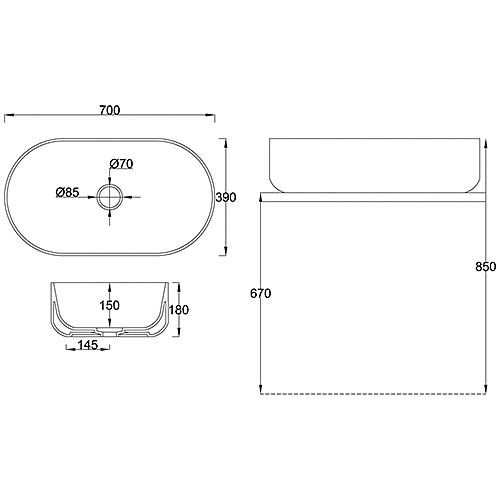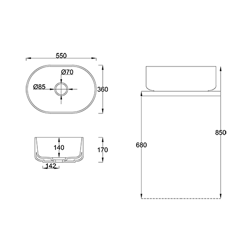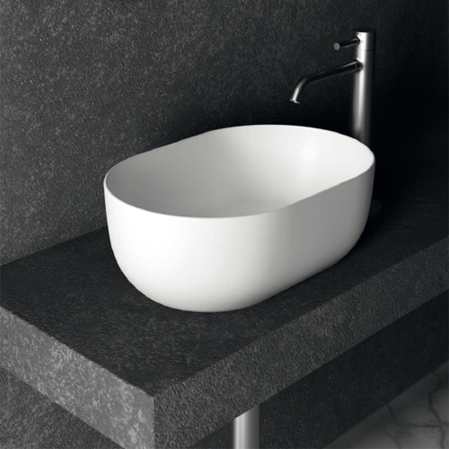 Lavabo d'appoggio in ceramica bianca, serie FLAMINGO. Dal design monderno, totalmente MADE IN ITALY. Fissaggio NON incluso. Sifone e rubinetto non inclusi. Garanzia 5 anni.