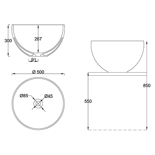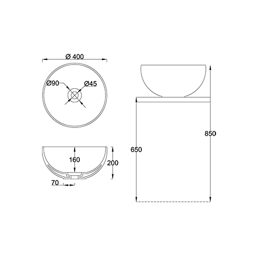 Dimensioni disponibili: Ø 40 x 20 cm, Ø 50 x 30 cm